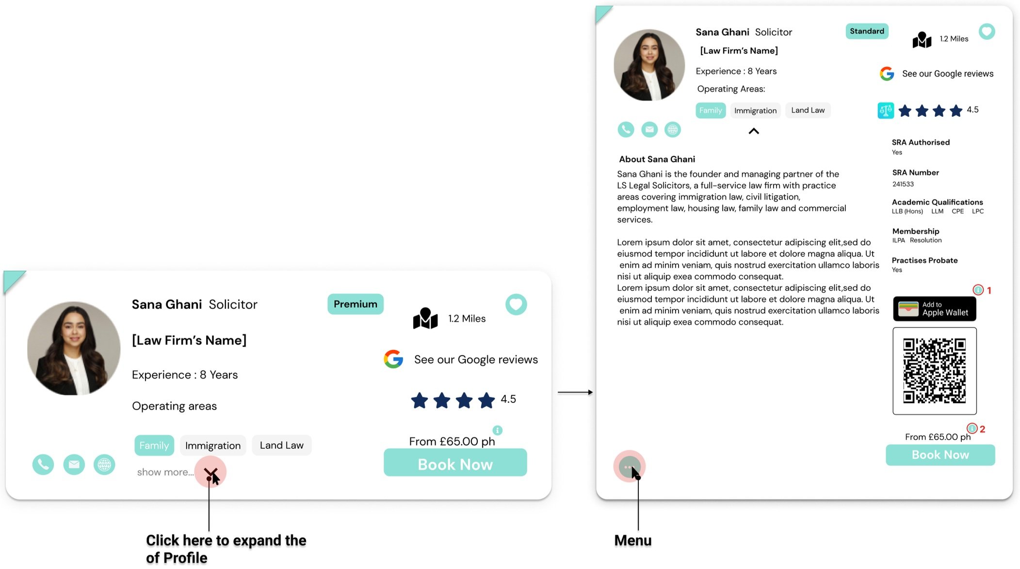 EXPANDING VIEW OF SOLICITOR PROFILE CARD